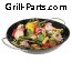 Porcelain Coated Round Topper. 11” diameter x 2.5” deep porcelain coated wok with stainless steel handles and perforations. Rolled edge for rigidity and safety.